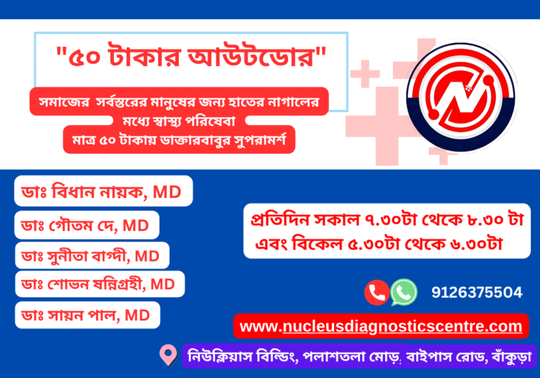 নিউক্লিয়াস রিসেপশন এর নাম্বারে (৯১২৬৩৭৫৫০৪) ফোন করে অ্যাপয়েন্টমেন্ট নিতে হবে।